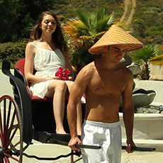 Als ich in China besuchte, sah ich einen einsamen Rikschafahrer, der durch das kleine Dorf trabte, in dem ich blieb. Ich sah ihn fast jeden Tag und jedes Mal, wenn er eine schöne Frau im Schlepptau hatte. Eines Tages beschlossen meine Freunde und ich, ihm zu folgen, um zu sehen, wo er diese schönen Frauen nahm. Wir folgten durch die Felder entlang der Schotterstraße, wo er schließlich an diesem besonderen Ort in den Bergen vorbeikam. Dort liebte er diese schönen Frauen unter der Sonne in voller Sicht auf die Natur. Es war eines der schönsten Dinge, die ich je gesehen hatte. Jetzt mit der Hilfe von Jessie und Logan habe ich die Szene so gut wie möglich nachgebaut, um Ihnen zu zeigen, was ich an diesem sonnigen Nachmittag in den Bergen gesehen habe. Ich präsentiere dir die Rikscha.